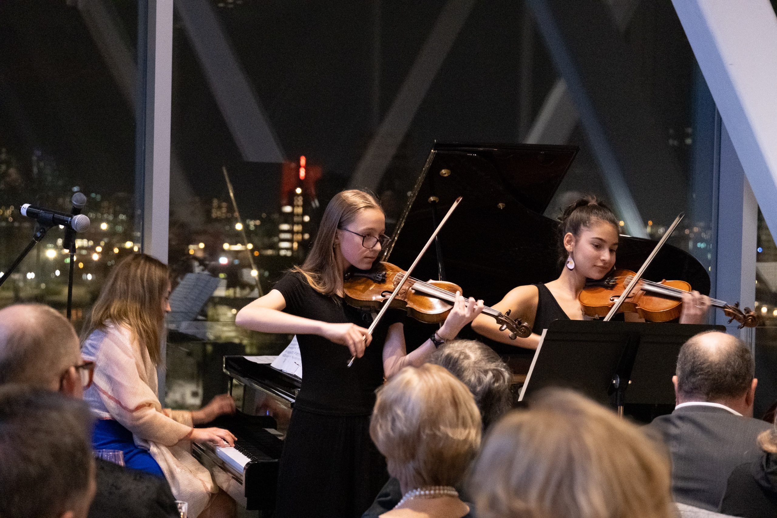 La soirée s’est ensuite poursuivie avec un récital mémorable réunissant l’artiste Pascale Bourbeau, Isabelle David au piano, la contralto Rose Naggar-Tremblay, le chef d’orchestre et de camp Hubert Tanguay-Labrosse accompagné de Julianne et Adèle, jeunes violonistes issues du Camp musical Père Lindsay, le percusionniste Bernard Riche, ainsi que le violoncelliste et animateur Stéphane Tétreault et la harpiste, également animatrice de la soirée, Valérie Milot. Leur prestation, à la fois riche et inspirante, a enchanté l’auditoire et témoigné de l’excellence musicale que la Fondation Père Lindsay contribue fièrement à faire rayonner.